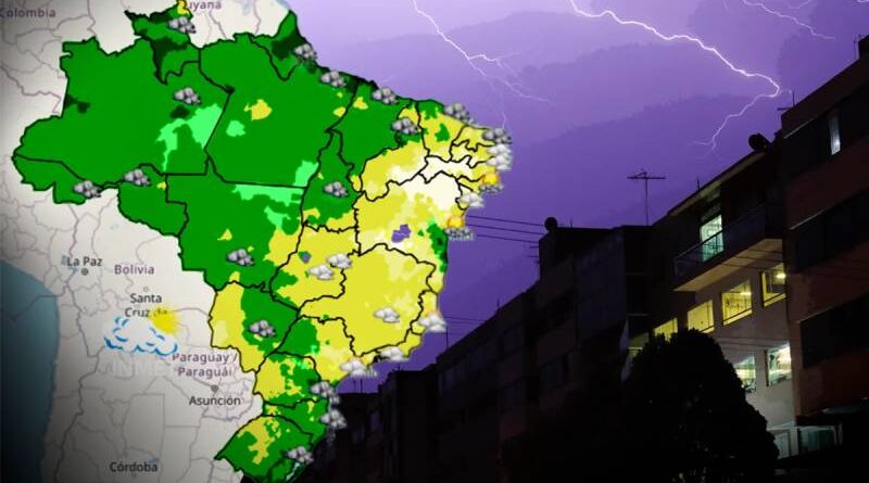 O Instituto Nacional de Meteorologia (Inmet) emitiu alguns alertas de tempestades para várias regiões do país nestes sábado e domingo/Foto: Arte de Michael Melo sobre foto de Igo Estrela/Metrópoles