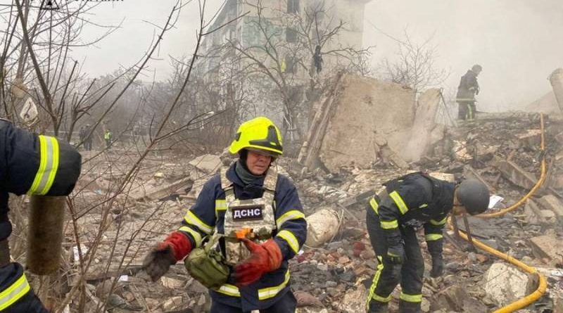 De acordo com o presidente da Ucrânia, Volodymyr Zelensky, militares russos empregaram mísseis, drones de ataque e bombas aéreas/Foto: Ministério do Interior da Ucrânia