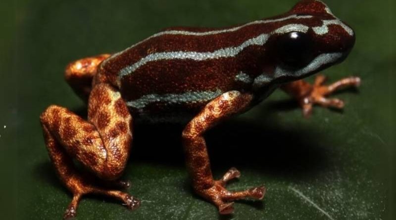 Ler maisO minúsculo sapo Ranitomeya aetherea tem coloração azul-celeste e pernas com brilho metálico/Foto: Alexander T. Mônico, Wikimedia Commons/ Divulgação Uma nova e