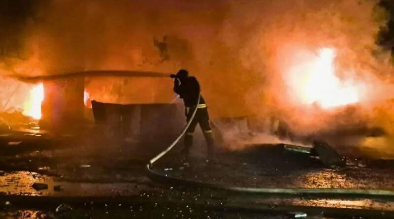 Ler maisEquipes de bombeiros trabalham para extinguir as chamas após um ataque russo a Kiev, na Ucrânia • Serviço de Emergência do