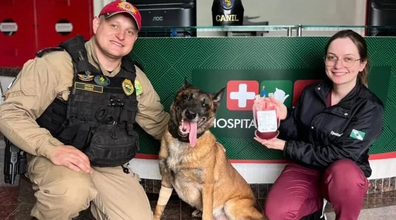 Ler maisO K9 Átila doou, nessa sexta-feira (3/10), sangue para salvar uma cadela gestante que tinha sido atropelada no Paraná/Foto: Divulgação