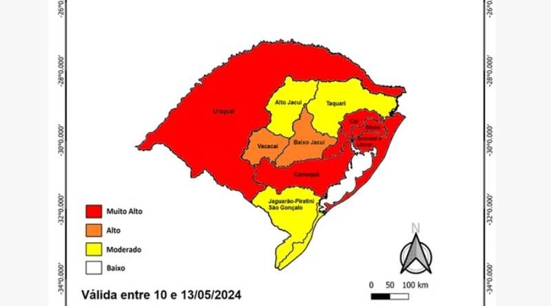 O Inmet, por sua vez, divulgou relatório com outros órgãos afirmando que entre esta sexta e a segunda-feira (13/5), há alta probabilidade de “movimentos de massa” em diversos setores do RS. Isso inclui a Região Metropolitana de Porto Alegre e a Serra Gaúcha.