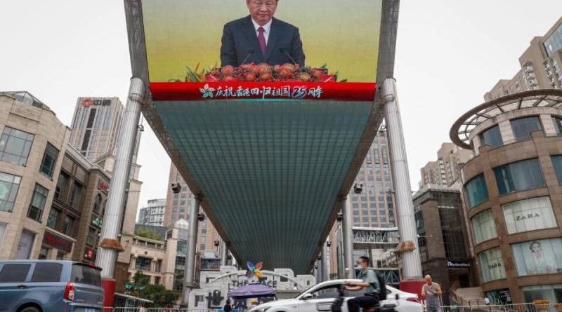 O ditador chinês, Xi Jinping, discursando na cerimônia de posse do novo presidente-executivo de Hong Kong, John Lee, em Pequim| Foto: EFE/EPA/MARK R. CRISTINO