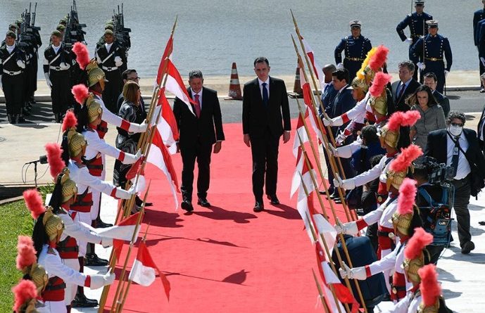 Após os cumprimentos às autoridades, todos seguem para o Plenário da Câmara dos Deputados onde Pacheco dará início à sessão solene, com execução do Hino Nacional pela banda do corpo de fuzileiros navais.