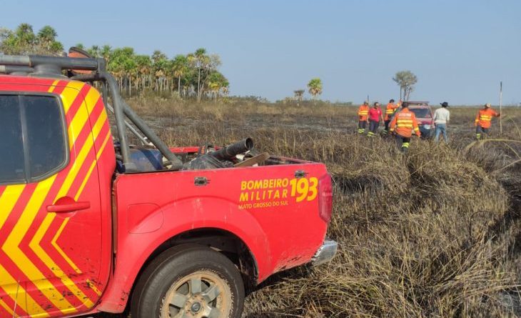 Equipes do Corpo de Bombeiros Militar de Mato Grosso do Sul atuam no combate a três incêndios florestais no Pantanal, nas regiões do Nabileque, Salobra e Paiaguás.
