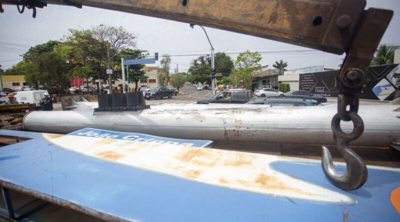 Depois de ficarem cobertos com sacos pretos e enfaixados, para não confundir os motoristas de qual equipamento estaria funcionando, os novos semáforos que são sustentados pelos postes mais finos estão finalmente substituindo as robustas estruturas que sustentavam o dispositivo sinaleiro na avenida Fernando Corrêa da Costa.