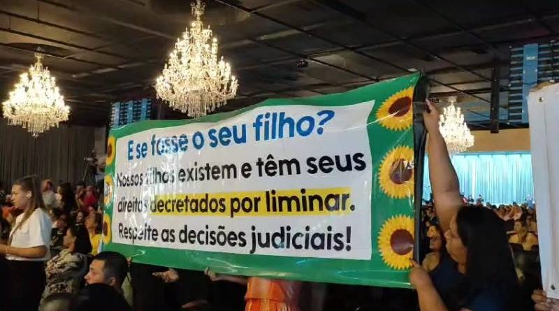 Mães fizeram protesto em evento que teve Micelle Bolsonaro. (Foto: Reprodução/Divulgação)