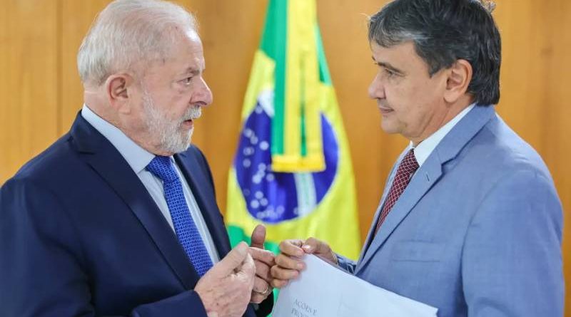O presidente Luiz Inácio Lula da Silva conversa com o ministro do Desenvolvimento e Assistência Social, Família e Combate à Fome, Wellington Dias (Ricardo Stuckert/PR)
