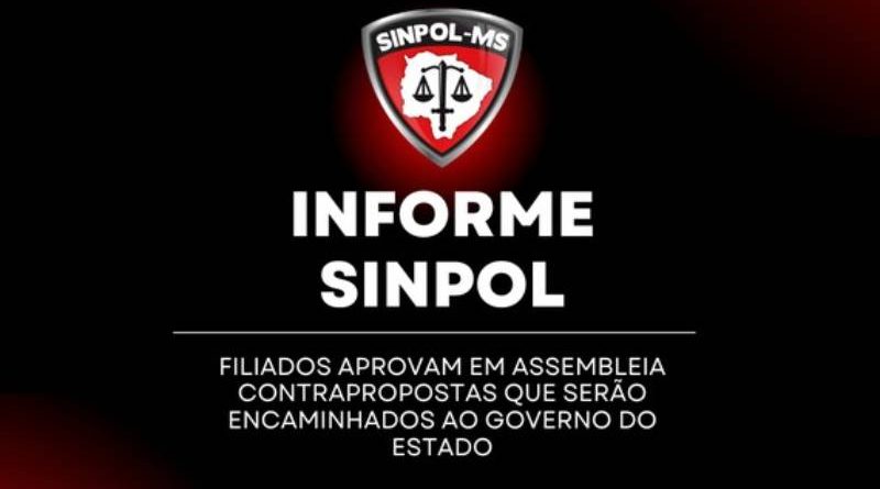 Os policiais civis filiados do Sinpol-MS, que participaram na terça-feira (24) da Assembleia Geral (presencial e on-line), aprovaram quatro contrapropostas que serão encaminhadas ao governo do Estado, em relação ao reajuste salarial da categoria.