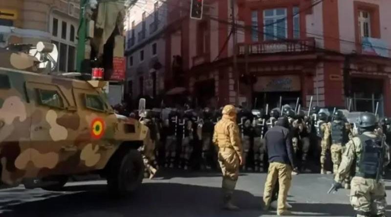 Os militares formaram colunas sustentadas por malhas metálicas num raio de um quarteirão ao redor da Plaza Murillo, enquanto o presidente Luis Arce e seu gabinete permaneceram na Casa Grande del Pueblo com a decisão de resistir ao plano golpista.