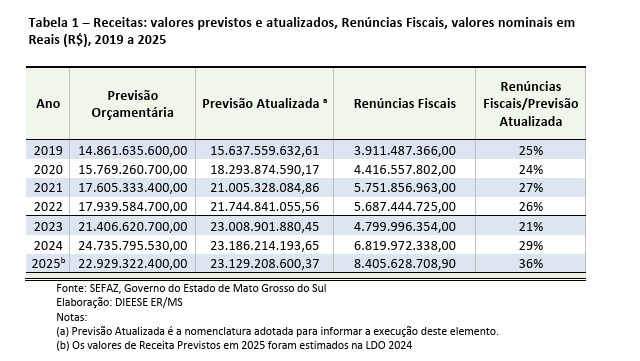 De acordo com o documento, a renúncia fiscal acumulada em Mato Grosso do Sul entre os anos de 2015 e 2025 é estimada em R$ 17,64 bilhões. Esse montante representa uma abdicação média de 27% da receita prevista para o estado.