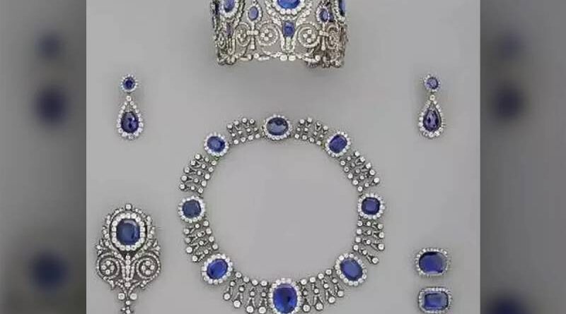 - Coroa com safiras e quase 2.000 diamantes e colar com oito safiras do Sri Lanka e mais de 600 diamantes da rainha consorte Maria Amélia (a foto também exibe brincos e um broche, mas as peças não foram levadas);