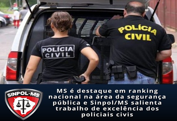 MS é destaque em ranking nacional na área da segurança pública e Sinpol/MS salienta trabalho de excelência dos policiais civis