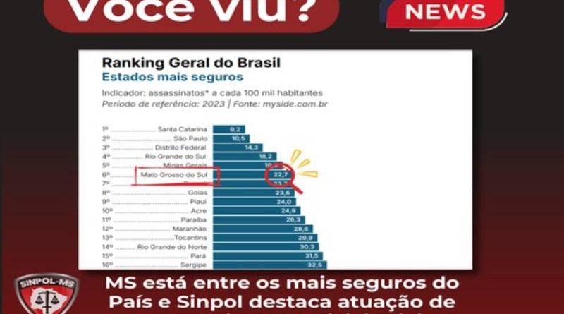 MS está entre os mais seguros do País e Sinpol destaca atuação de excelência dos policiais civis
