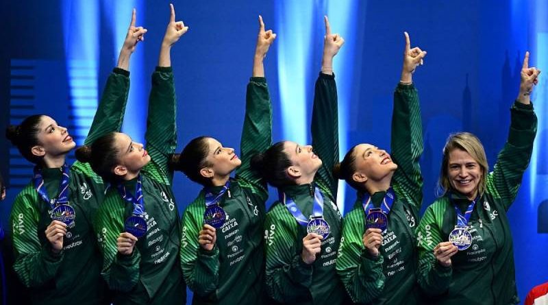 Nesse sábado (23/8), o Brasil conquistou a medalha inédita. A equipe formada por Maria Eduarda Arakaki, Maria Paula Caminha, Mariana Gonçalves, Sofia Pereira e Nicole Pircio conquistou a medalha de prata depois de somar 55.250 pontos. Essa foi a primeira medalha brasileira na competição.