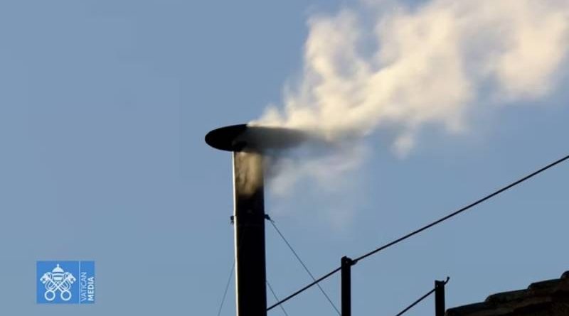 Fumaça branca surgiu Vaticano na tarde desta quinta-feira (8/5), segundo dia de conclave, anunciando a escolha do papa/Foto: Reprodução/Vaticano
