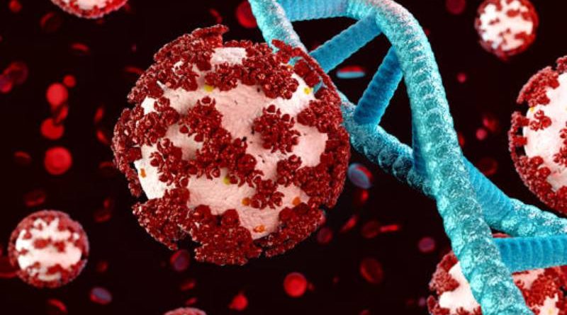 Microscopic view Coronavirus Covid-19 and DNA. Coronavirus Variant Concept.© atakan/istock