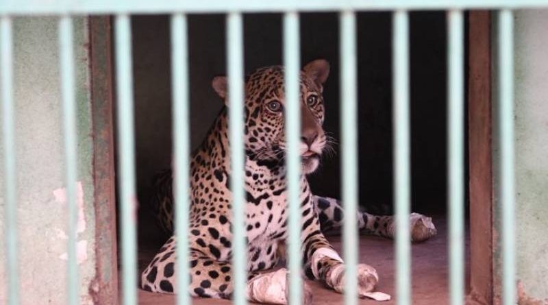 Onça resgatada no Pantanal chega ao Hospital Ayty para tratamento e esturro é o 1º sinal positivo do animal