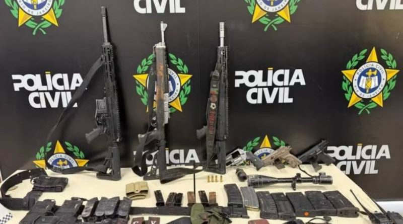 Fuzis e carregadores apreendidos durante a operação policial em Duque de Caxias/Foto: Divulgação/Polícia Civil do RJ