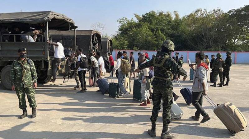 Mais de 250 pessoas de 20 países que terão sido resgatadas de alegados centros de burla em Myanmar, 12 de fevereiro de 2025 AP/AP