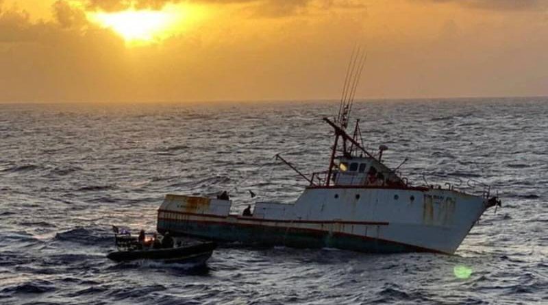 A abordagem foi feita juntamente com um navio patrulha da Marinha e resultou de um trabalho feito em cooperação com os departamentos de combate ao tráfico internacional de drogas dos Estados Unidos (DEA) e da Inglaterra (NCA).