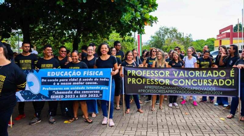 A manifestação incluiu professores especializados em diversas disciplinas, como ciências, português, educação física, geografia e matemática.