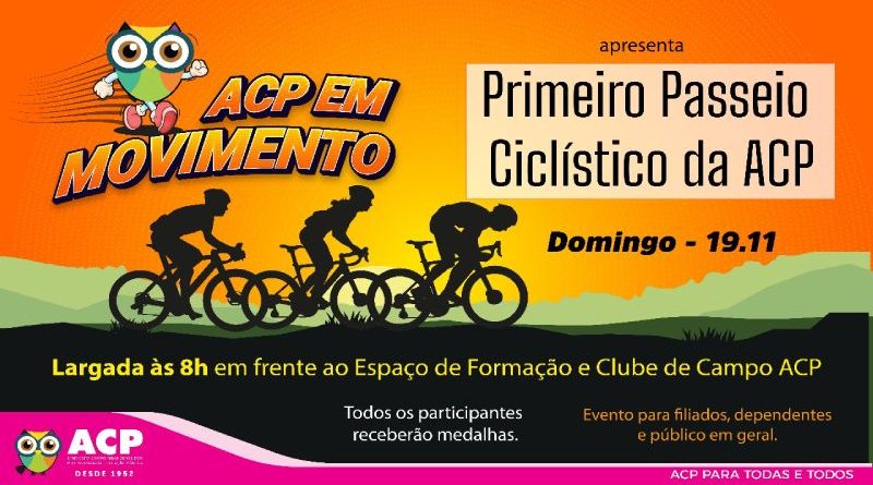 🔹O evento faz parte da primeira ação do projeto “ACP em Movimento” que envolve diversas atividades físicas e de lazer voltadas para os professores.🔸Prepare a sua bike ou alugue uma no local. A largada para o passeio será às 8h no Espaço de Formação e Clube de Campo da ACP.🥇🥈🥉🔹Chame amigos e familiares para que todos participem desta grande ação em prol da saúde e incentivo ao esporte. 🚲🚴🔹O percurso terá 15km a partir do Clube de Campo da ACP. Inscrições no Google Forms ou na secretaria da ACP pelo 3324-7014.Google Forms – https://forms.gle/9RwVMnquev2Ydw12A