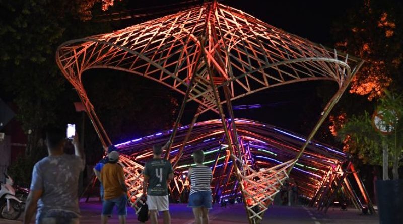 Sob a luz da lua e de lâmpadas coloridas, o bambu mostra seu vigor e sustenta a estrutura do túnel montado para receber quem chega a Bonito, abrindo caminho para as mais diversas atrações fixadas na Praça da Liberdade e redondezas. Este mesmo túnel é que faz a ligação entre os dois corações do evento: a praça e o palco principal, onde ocorrem os shows principais diários.