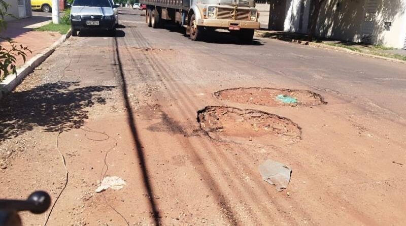 Buraco em rua da Capital: onde prefeita gastou todo o orçamento e não resolveu o básico? (Foto: O Jacaré)