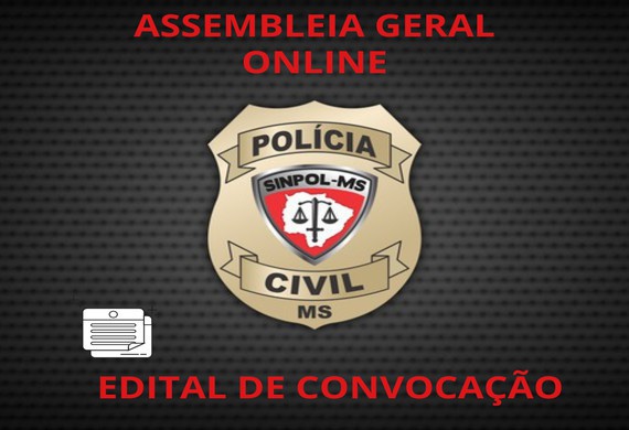 O PRESIDENTE DOSINDICATO DOS POLICIAIS CIVIS DO ESTADO DE MATO GROSSO DO SUL – SINPOL/MS, inscrito no CNPJ sob nº 01.105.436/0001-08, em conformidade com o artigo 15, alínea “a” e artigo 11, §2º, ambos do Estatuto Social da entidade, CONVOCA todos os filiados para ASSEMBLEIA GERAL “ON LINE” – PERMANENTE, que será realizada no dia 19 de dezembro de 2023, às 18h00min, em primeira convocação (não havendo quorum 30 minutos após será feita a segunda e definitiva convocação), por meio eletrônico de acesso via internet, mediante “link” a ser disponibilizado até 24 horas antes do início da reunião no sitio do SINPOL/MS e suas redes sociais, para deliberarem especificamente sobre a pauta única: NEGOCIAÇÃO SALARIAL.
