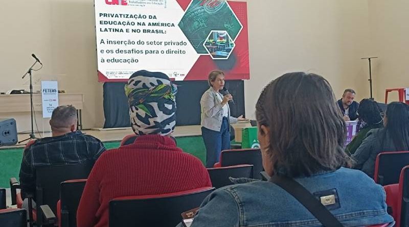 Na última sexta-feira (30), a ACP (Sindicato Campo-grandense dos Profissionais da Educação Pública) promoveu uma Formação Sindical no auditório da FETEMS (Federação dos Trabalhadores em Educação de Mato Grosso do Sul), com o tema “Privatização da Educação na América Latina e no Brasil: A inserção do setor privado e os desafios para o direito à educação”. A atividade foi conduzida pela professora Fátima Silva, filiada à ACP, ex-presidenta da FETEMS e atual secretária da CNTE (Confederação Nacional dos Trabalhadores em Educação).