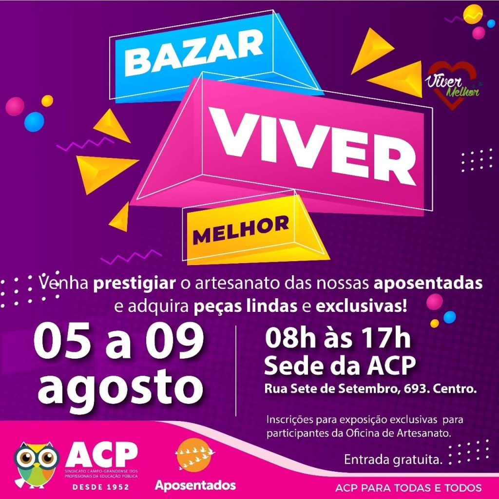 A Secretaria dos Aposentados da ACP convida o público em geral para prestigiar mais uma edição especial do Bazar do Projeto Viver Melhor!
