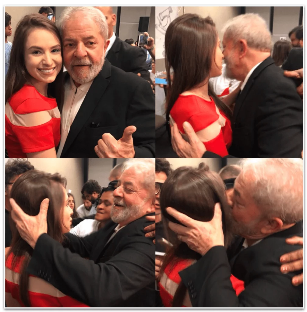 Montagem publicada por Patrícia Lélis em seu perfil no Facebook; nas imagens, ela está ao lado do presidente Luiz Inácio Lula da Silva (PT)