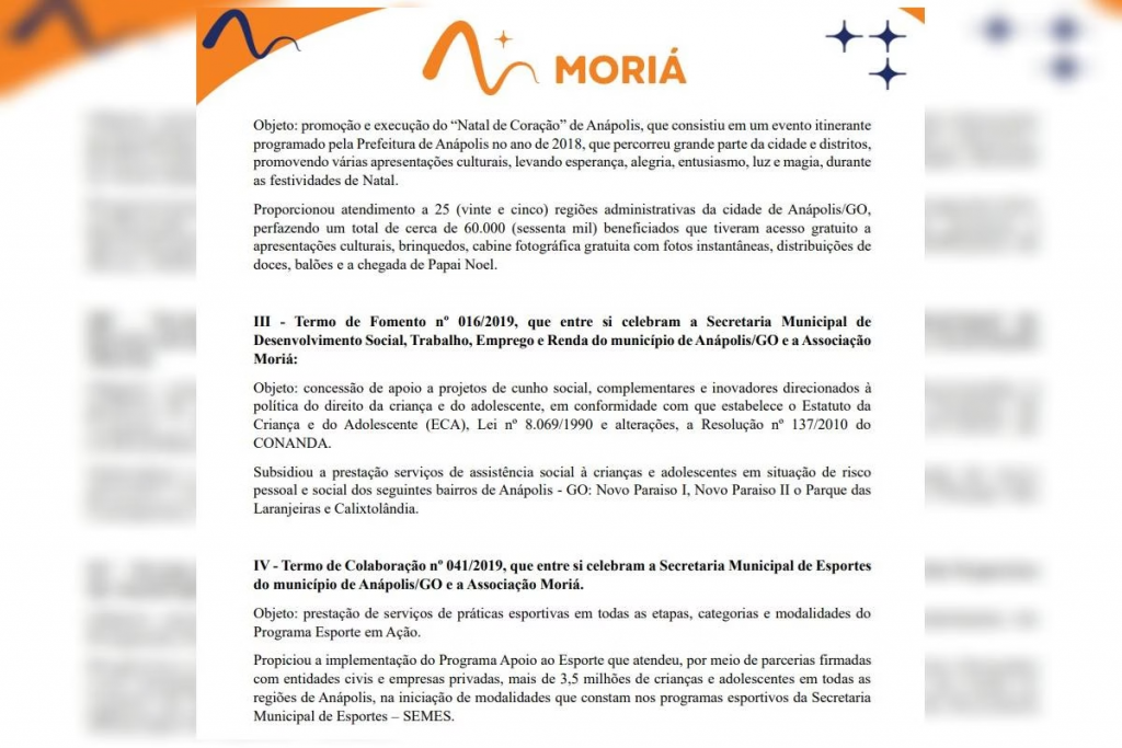 - A Associação Moriá recebeu o sinal verde para movimentar milhões de reais com base em um atestado com informação falsa: diz que atendeu 3,5 milhões de jovens em Anápolis (GO), cidade com 398 mil habitantes de todas as faixas etárias.