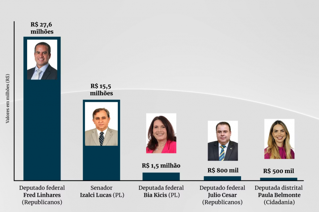 - senador Izalci Lucas (PL): R$ 15,5 milhões;