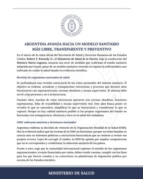 No documento, o país ainda oficializa sua decisão de se retirar da OMS. “Hoje, a evidência indica que as receitas da OMS não funcionam, porque não estão baseadas em ciência, mas em interesses políticos e estruturas burocráticas que resistem a revisar seus próprios erros”, diz o comunicado.