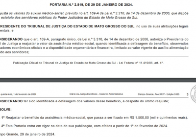 O novo aumento foi formalizado por meio da Portaria n.º 2.819, de 29 de janeiro de 2024, publicado nas páginas 2-3 do Diário de Justiça n.º 5335, de 01/02/2024. Com o novo aumento o valor passa dos atuais 1.300 reais para 1.500 reais por mês.