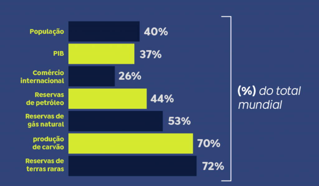 O Brics tem sido usado como plataforma alternativa de diálogo e integração de países insatisfeitos com a ordem internacional liderada pelos EUA e dominada pelo dólar. Com dez membros plenos, o Brics representa mais de 40% da população global e 37% do PIB mundial por poder de compra, superando o peso econômico do G7, que une os países mais industrializados do mundo.