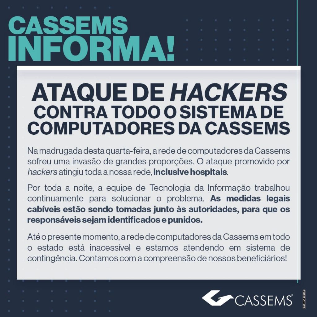Saúde CASSEMS INFORMA: Ataque de hackers contra todo o sistema de computadores da Cassems 13 de setembro de 202313 de setembro de 2023 Redação 0 comentários Atenção: Informação importante do presidente da Cassems Riacardo Ayche, sobre ataque de hackers contra o sistema de computadores da entidade.