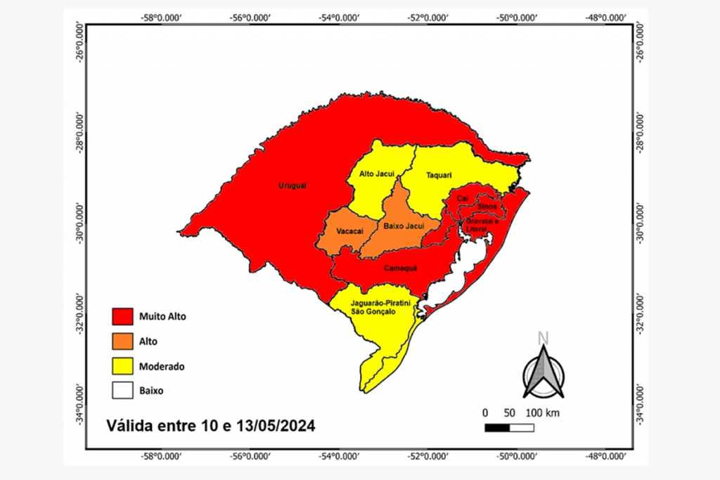 O Inmet, por sua vez, divulgou relatório com outros órgãos afirmando que entre esta sexta e a segunda-feira (13/5), há alta probabilidade de “movimentos de massa” em diversos setores do RS. Isso inclui a Região Metropolitana de Porto Alegre e a Serra Gaúcha.