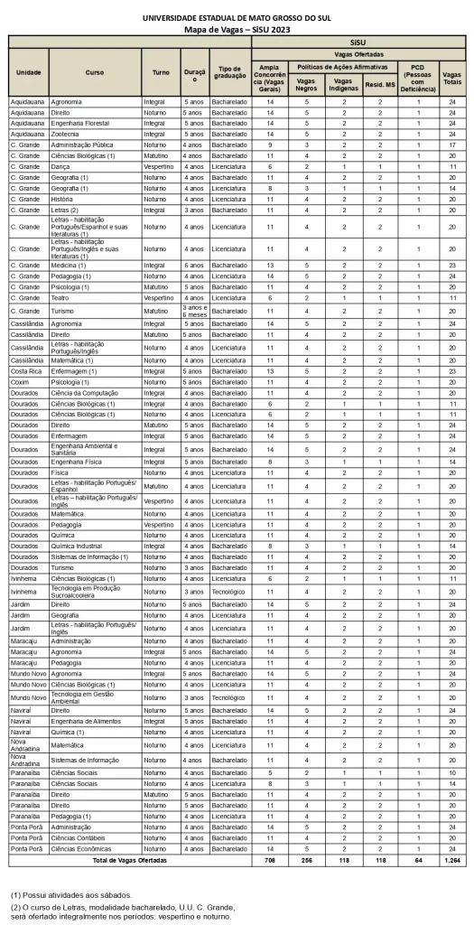 Para o Sisu 2023, em cumprimento ao disposto na Resolução CEPE-UEMS Nº 2.474, de 30 de agosto de 2022, a ocupação das vagas oferecidas para cada curso será por meio dos sistemas de ingresso: