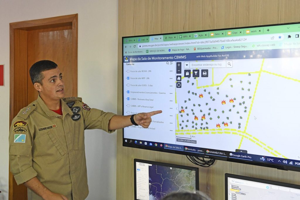 “No nosso monitoramento que funciona 24h por dia a gente acompanha os focos de calor que são detectados pelos satélites. O satélite detecta temperatura acima de 47°C na superfície da terra, que é considerado foco de calor. A cada 10 minutos nós temos uma informação atualizada. Nós acompanhamos cada detecção e partir de cada uma investigamos em qual propriedade se localiza aquele foco de calor e fazemos contato com o proprietário para saber a situação real na área”, disse o tenente Alexandre Araújo, engenheiro ambiental especialista CPA.