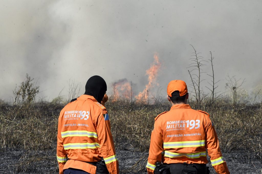 “Neste período de estiagem, a vegetação está muito seca. Então quando você tem essas condições climáticas de humidade relativa baixa, temperaturas que facilmente ultrapassam os 30°C e ventos fortes de mais de 40 km/h no Pantanal, a gente tem propagação de incêndio rápida”, disse a tenente-coronel Tatiane Inoue, chefe do CPA (Centro de Proteção Ambiental) do Corpo de Bombeiros Militar de MS.