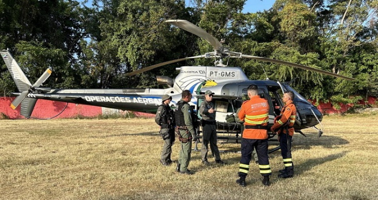 Nesta manhã, por volta das 05h, decolou do Aeroporto Internacional de Campo Grande a aeronave Fronteira 1, da Polícia Militar, para prestar auxílio aos combatentes do Corpo de Bombeiros na aproximação do incêndio. Nesse voo, foi enviado pelo SCI um bombeiro militar especialista em incêndio florestal.