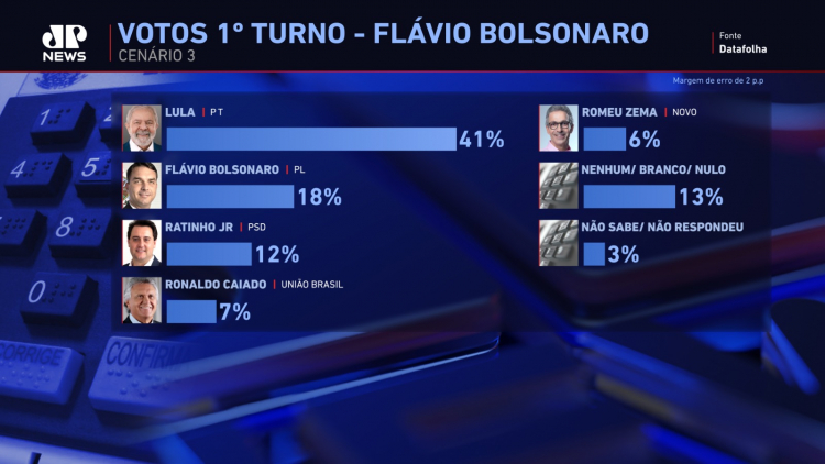 Dados são da pesquisa publicada neste sábado pelo Datafolha, que foi realizada antes da indicação de Jair Bolsonaro de que seu filho, Flávio, será o candidato que ele apoiará no ano que vem
