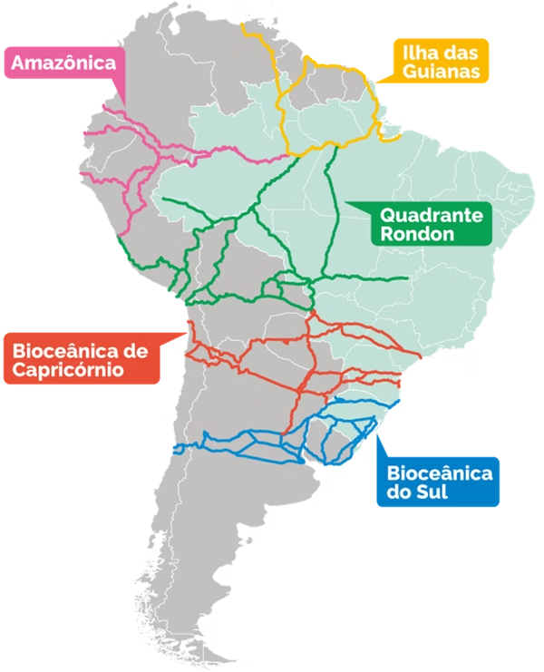 O governo brasileiro já trabalha, via Ministério do Planejamento e Orçamento, com o desenvolvimento das cinco rotas de Integração e Desenvolvimento Sul-Americano, que fazem parte da agenda da integração regional. A pasta desenhou as cinco rotas após consulta aos 11 estados brasileiros que fazem fronteira com os países da América do Sul.