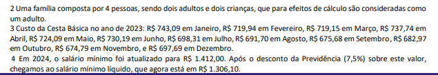 produtos alimentícios básicos. Em dezembro de 2023, com o salário mínimo no valor de