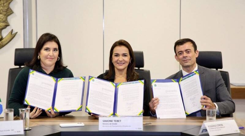 A prefeita de Campo Grande, Adriane Lopes (PP), a ministra do Planejamento, Simone Tebet, e o secretário do Tesouro Nacional, Rogério Ceron, assinaram a adesão da Capital ao Plano de Promoção do Equilíbrio Fiscal (PEF), nesta terça-feira (9). A medida permite à prefeitura contratar empréstimos com valor anual de até R$ 156 milhões.