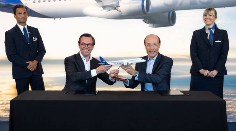 Embraer anunciou a venda de 45 jatos do modelo E195-E2, com direitos de compra para 10 aeronaves adicionais para a Scandinavian Airlines (SAS), da Dinamarca. O contrato é estimado em R$ 21,8 bilhões e é a maior encomenda de jatos da SAS diretamente para um fabricante desde a década de 1996.