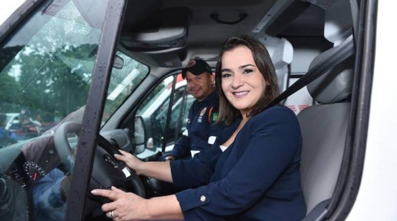 A prefeita Adriane Lopes até posou com ambulâncias, mas veículos ainda esperam para atender o povo. (Foto: Diculgação)